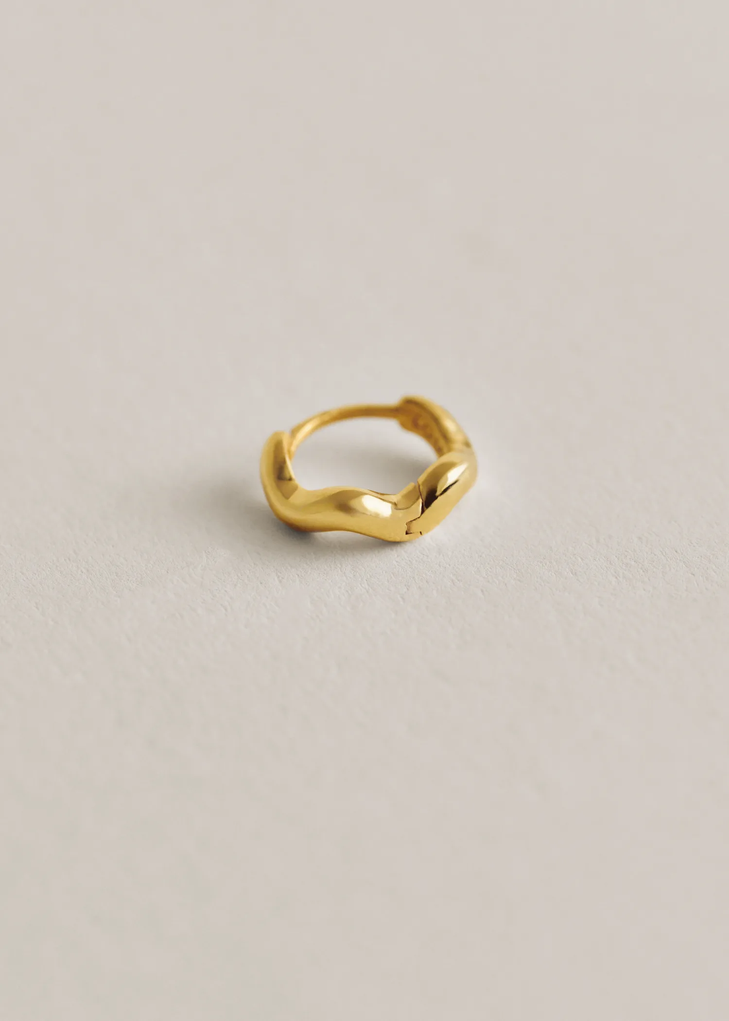 Aurea` polished mini hoop, an everyday hoop with a slightly curvy shape inspired by the organic shape of natural gold nuggets.