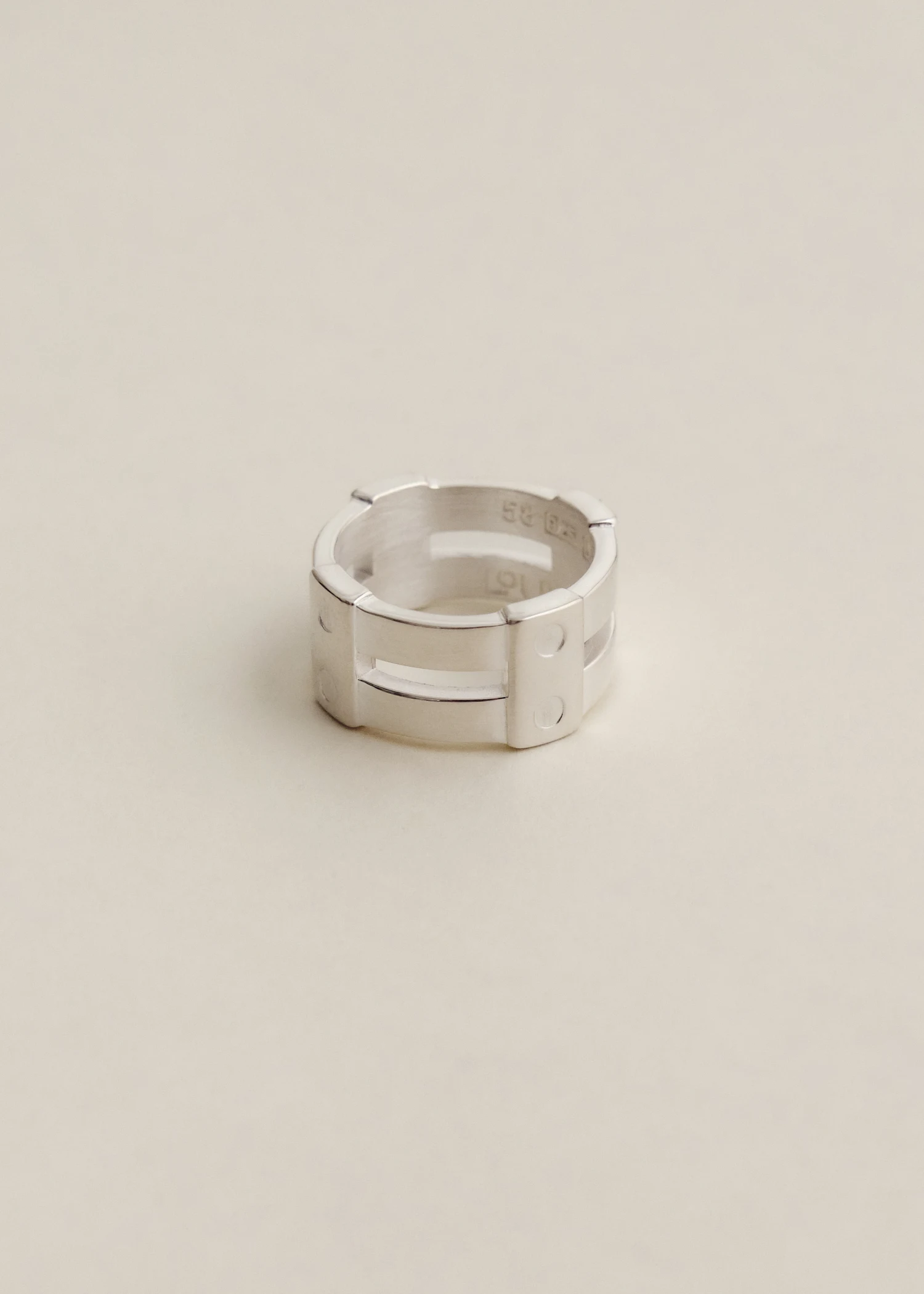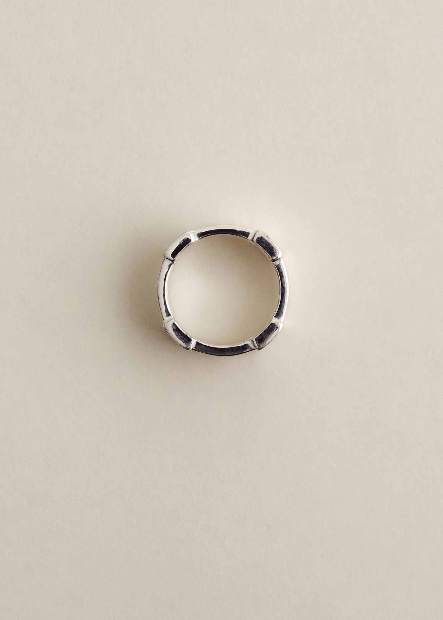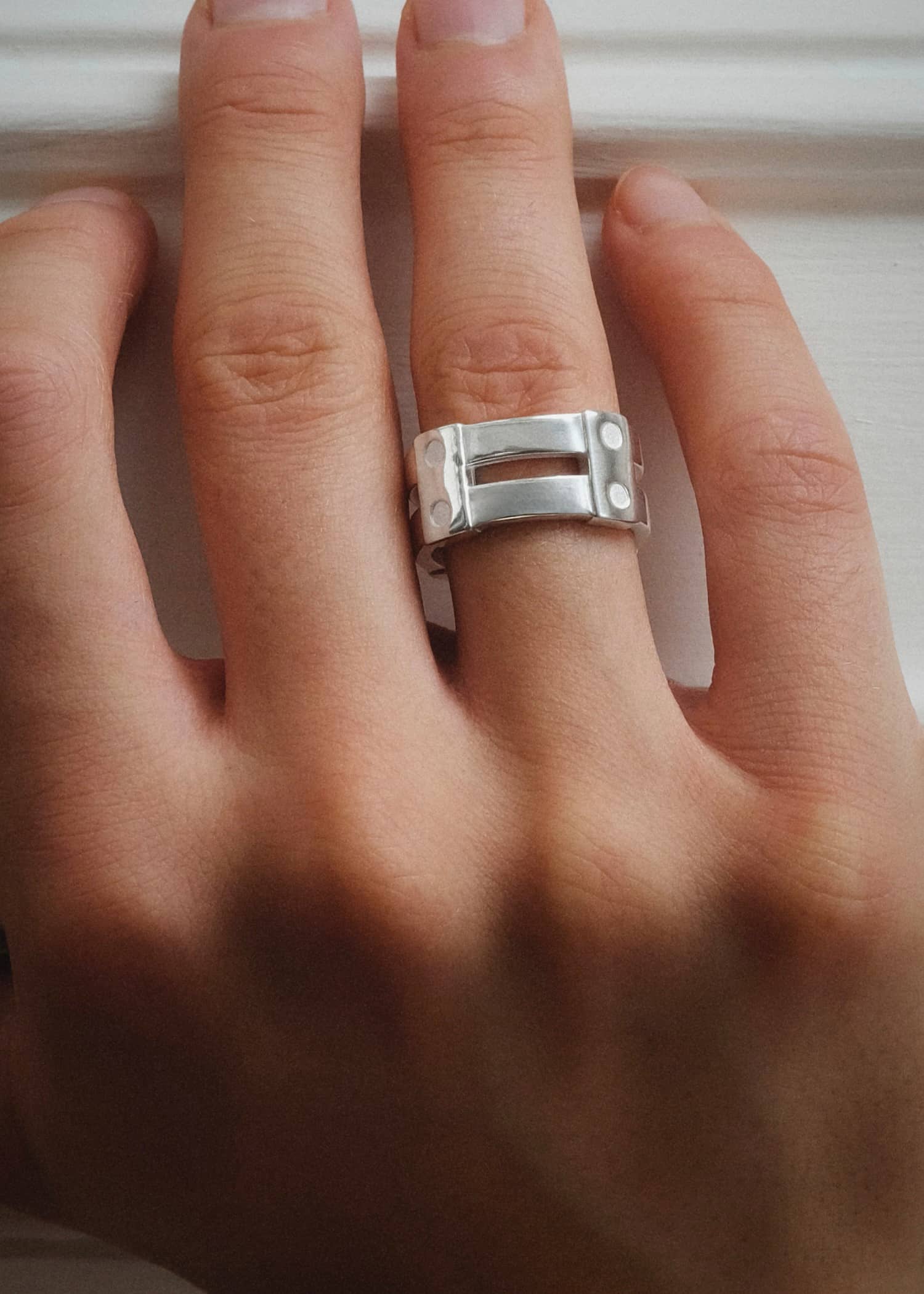 Inspired by structural beam systems, the Connector Ring reinterprets the bracket forms used to hold weight and create support. Rooted in the designer’s background in mechanical engineering, it bridges engineered structure with artisanal craftsmanship.