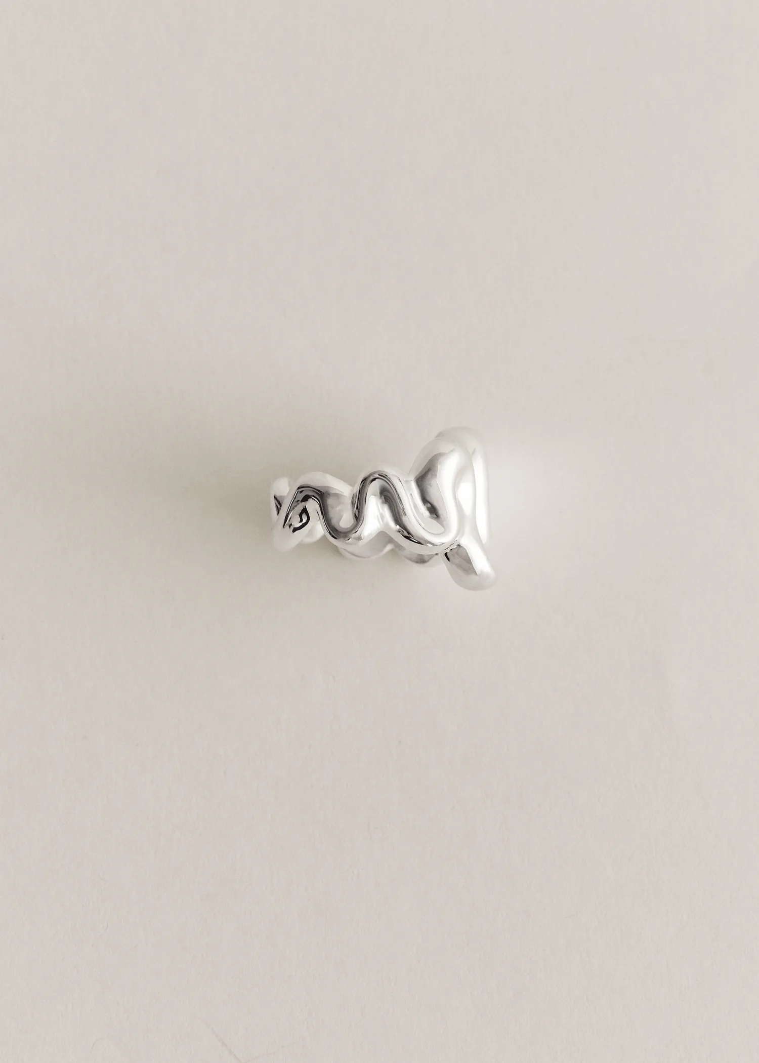 Crepito Ring is a chunky organically shaped ring expressing a playful yet bold aesthetic. Cast in recycled sterling silver using cire perdue, this ring comes with a highly polished surface.