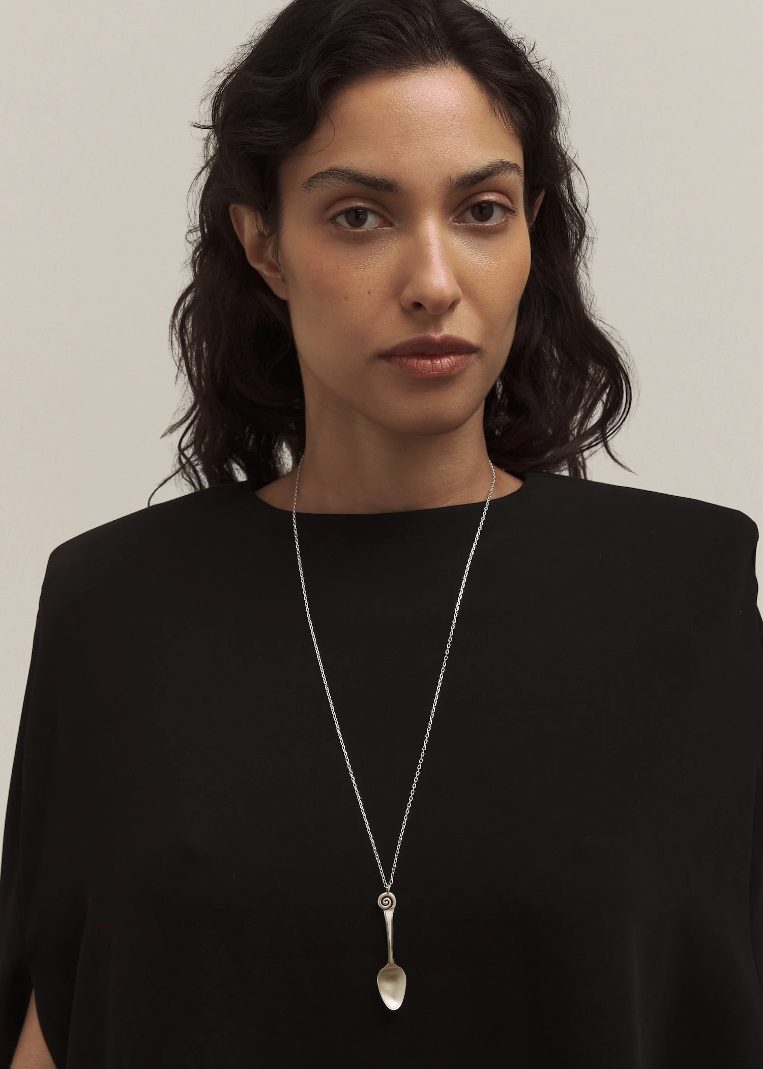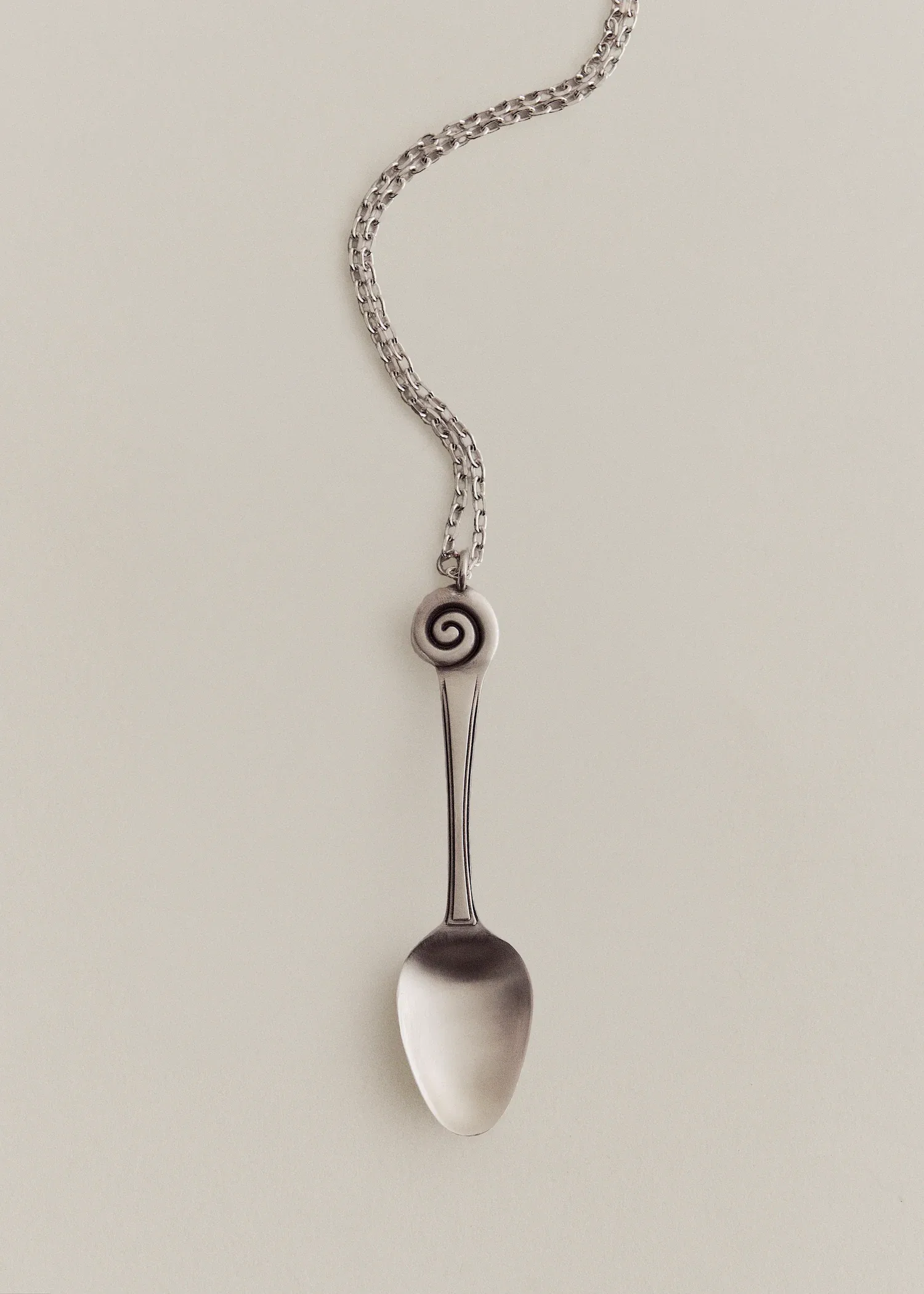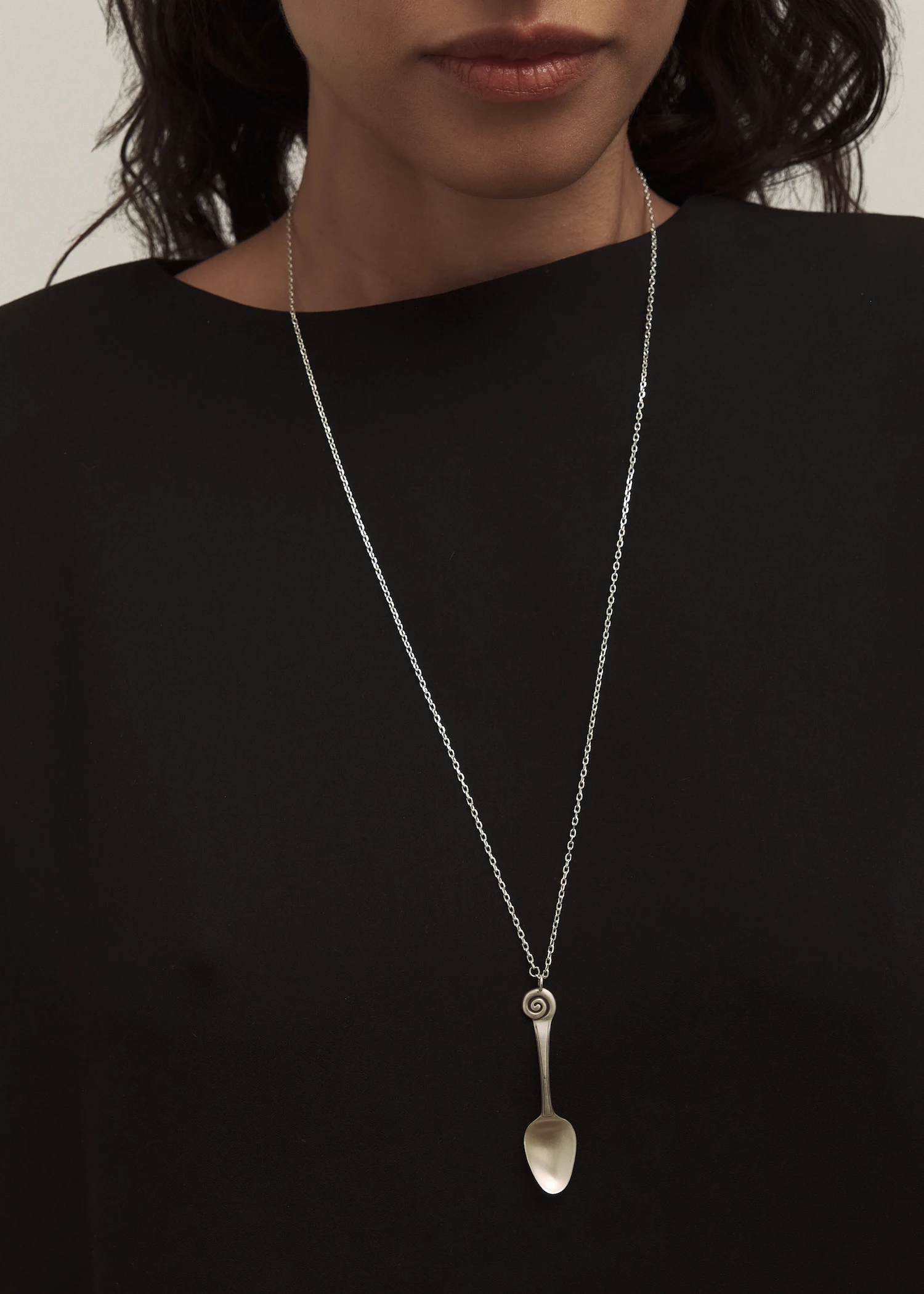 Rooted in the surreal, the Ain collection explores familiar forms, slightly shifted. When carried on the body, the pieces come alive. Dona Necklace features a delicate spoon motif with a subtle oxidised finish that gives it a beautifully antique feel.