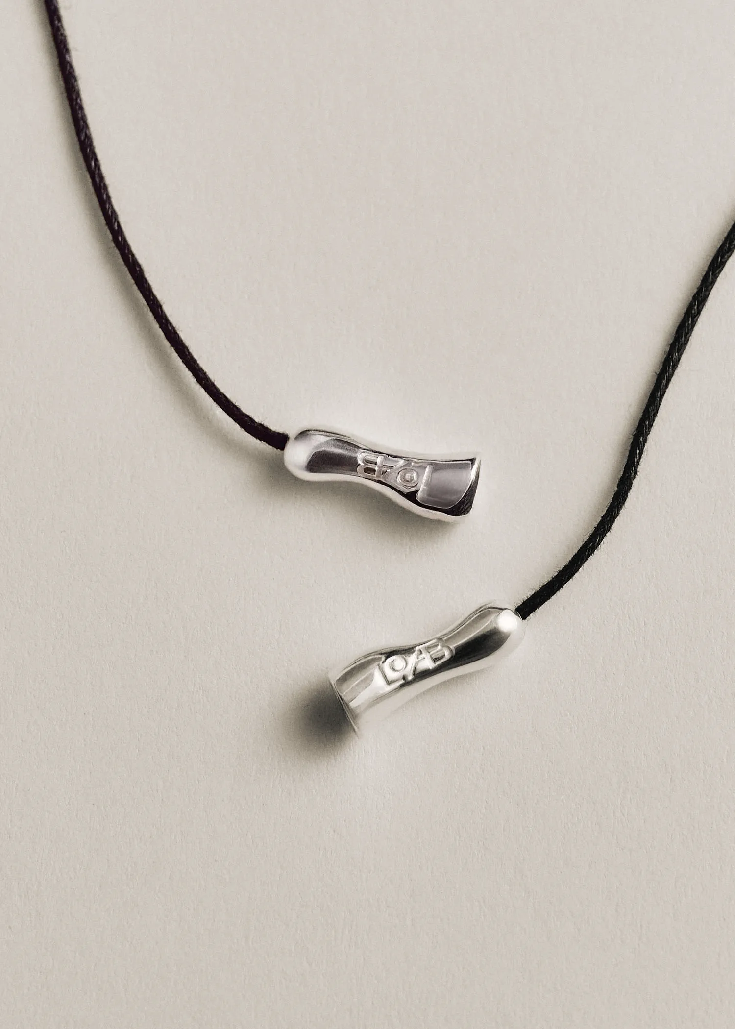 The Ovu Cord Necklace is inspired by beach rocks polished by the ocean. The pendant’s distinct crease adds a unique touch. It hangs on an unassuming cotton cord, finished with custom Louis Abel silver end caps.