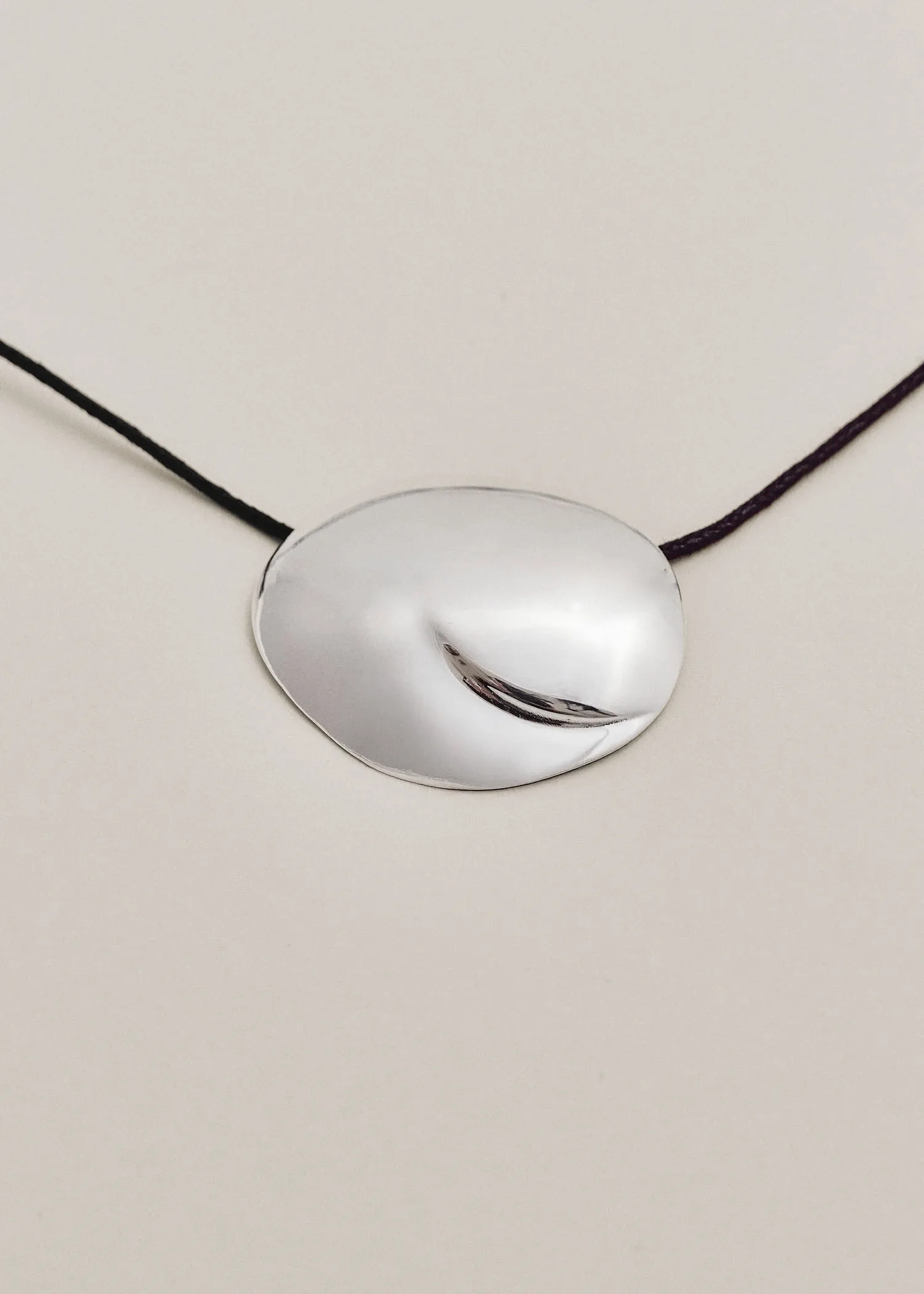 The Ovu Cord Necklace is inspired by beach rocks polished by the ocean. The pendant’s distinct crease adds a unique touch. It hangs on an unassuming cotton cord, finished with custom Louis Abel silver end caps.