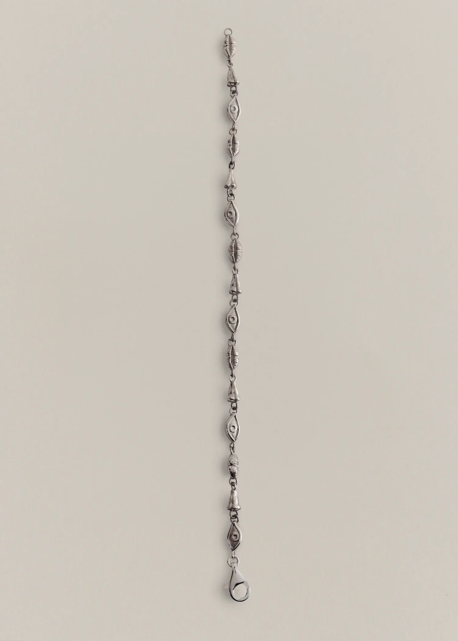 Sama Bracelet features a series of mini pendants arranged to form a face motif. Crafted in recycled sterling silver.